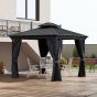 3 x 3.7m Outdoor Hardtop Gazebo Canopy Aluminum Frame with 2-Tier Roof & Mesh Netting Sidewalls for Patio, Dark Grey