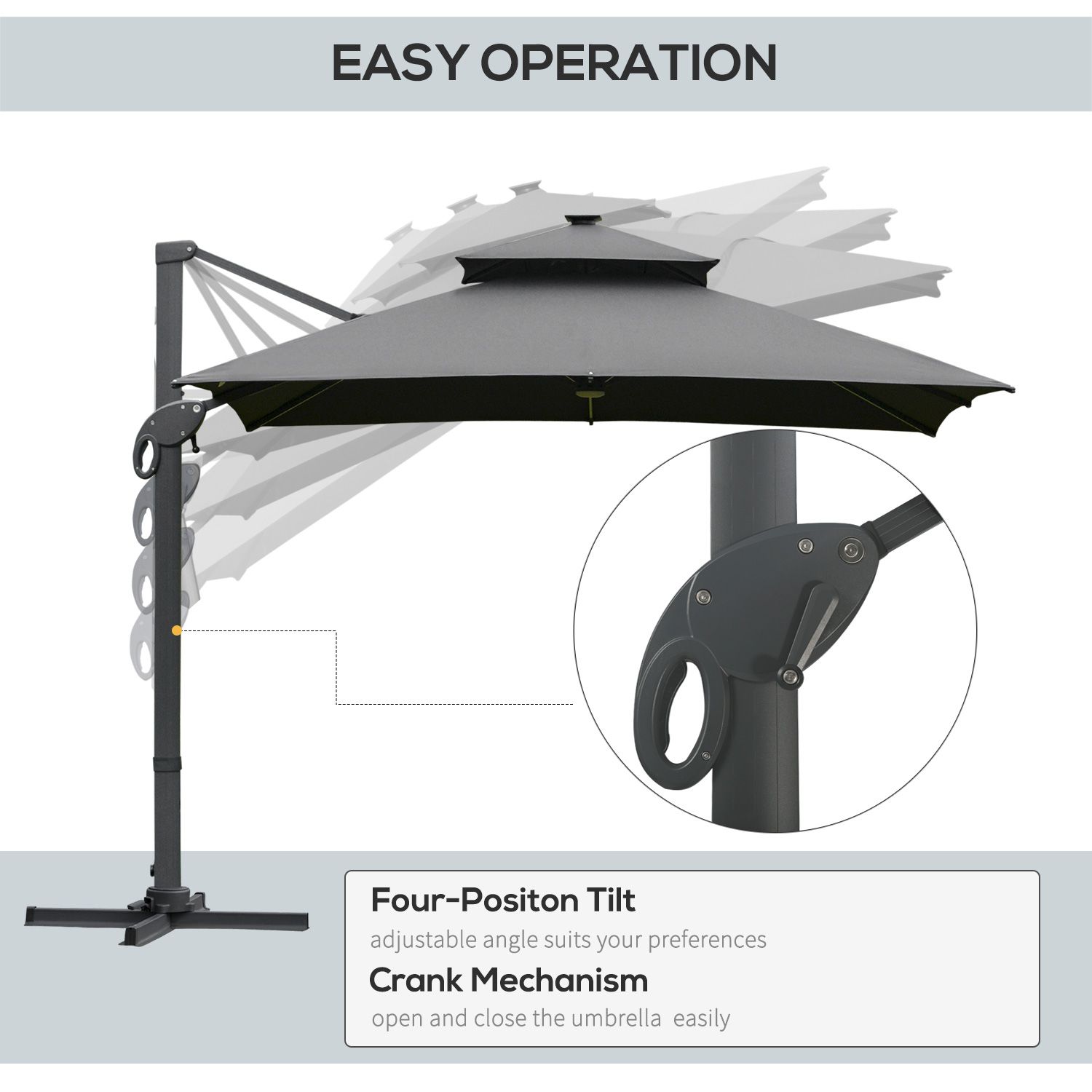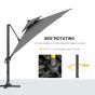 3 x 3(m) Cantilever Roma Parasol Garden Sun Umbrella Outdoor Patio with LED Solar Light Cross Base 360deg Rotating for Backyard Dark Gray