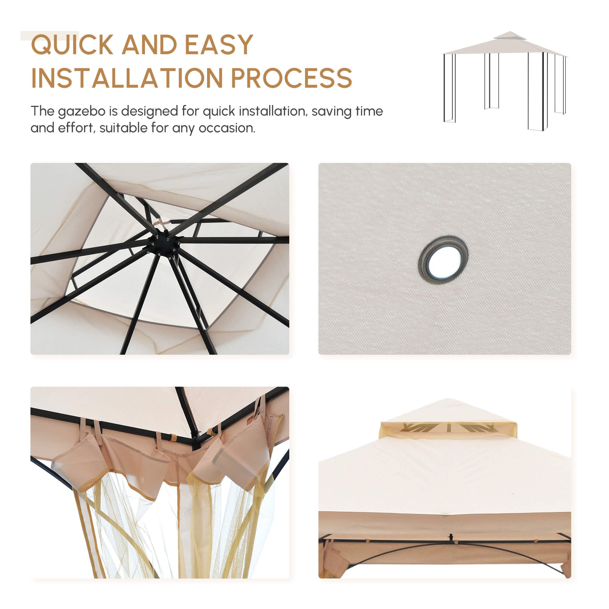 3 x 3 M Garden Gazebo Patio Party Tent Shelter Outdoor Canopy Double Tier Sun Shade Metal Frame Beige