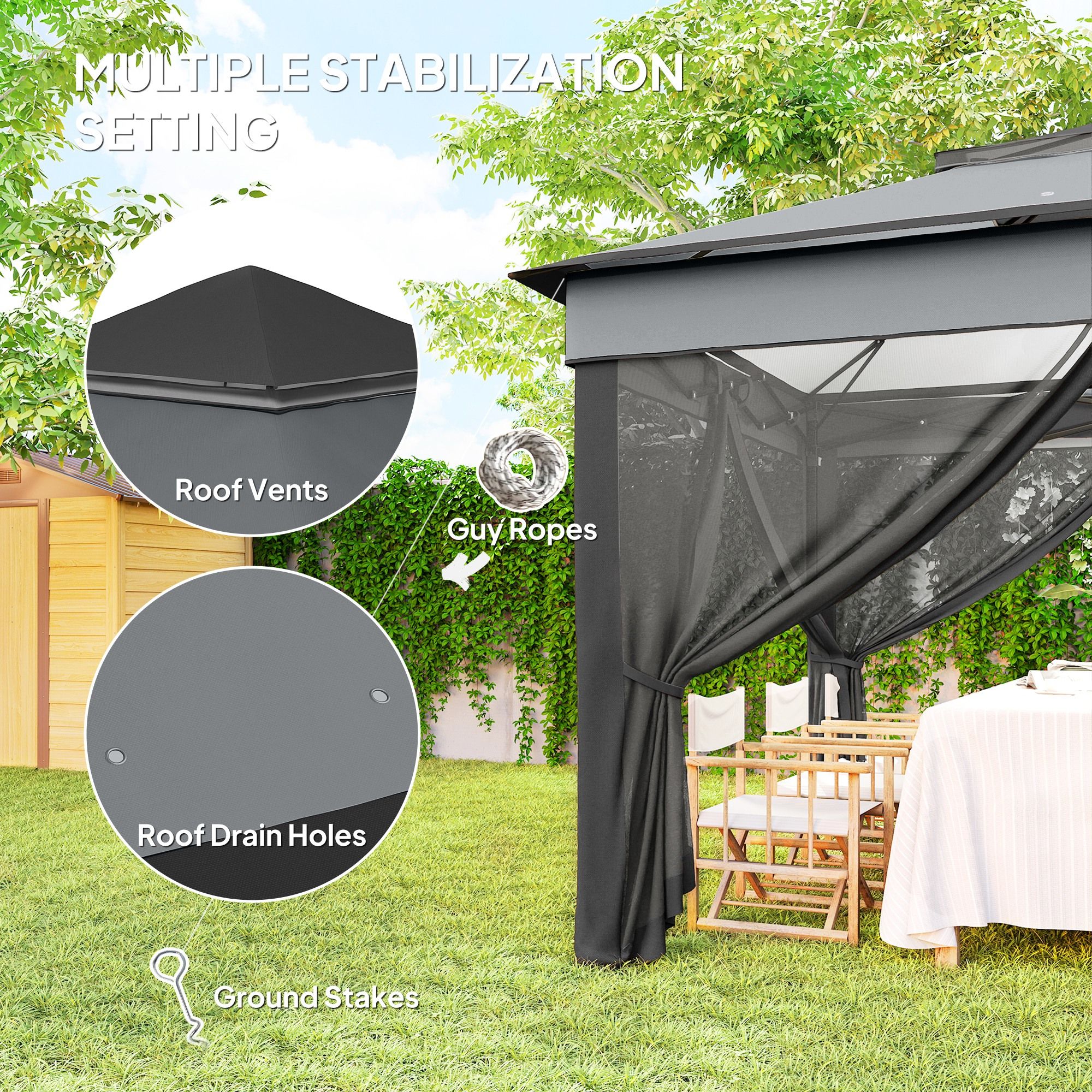 3 x 3(m) Pop Up Gazebo, Height Adjustable Instant Event Shelter with Netting and Carrying Bag, Grey