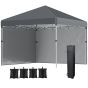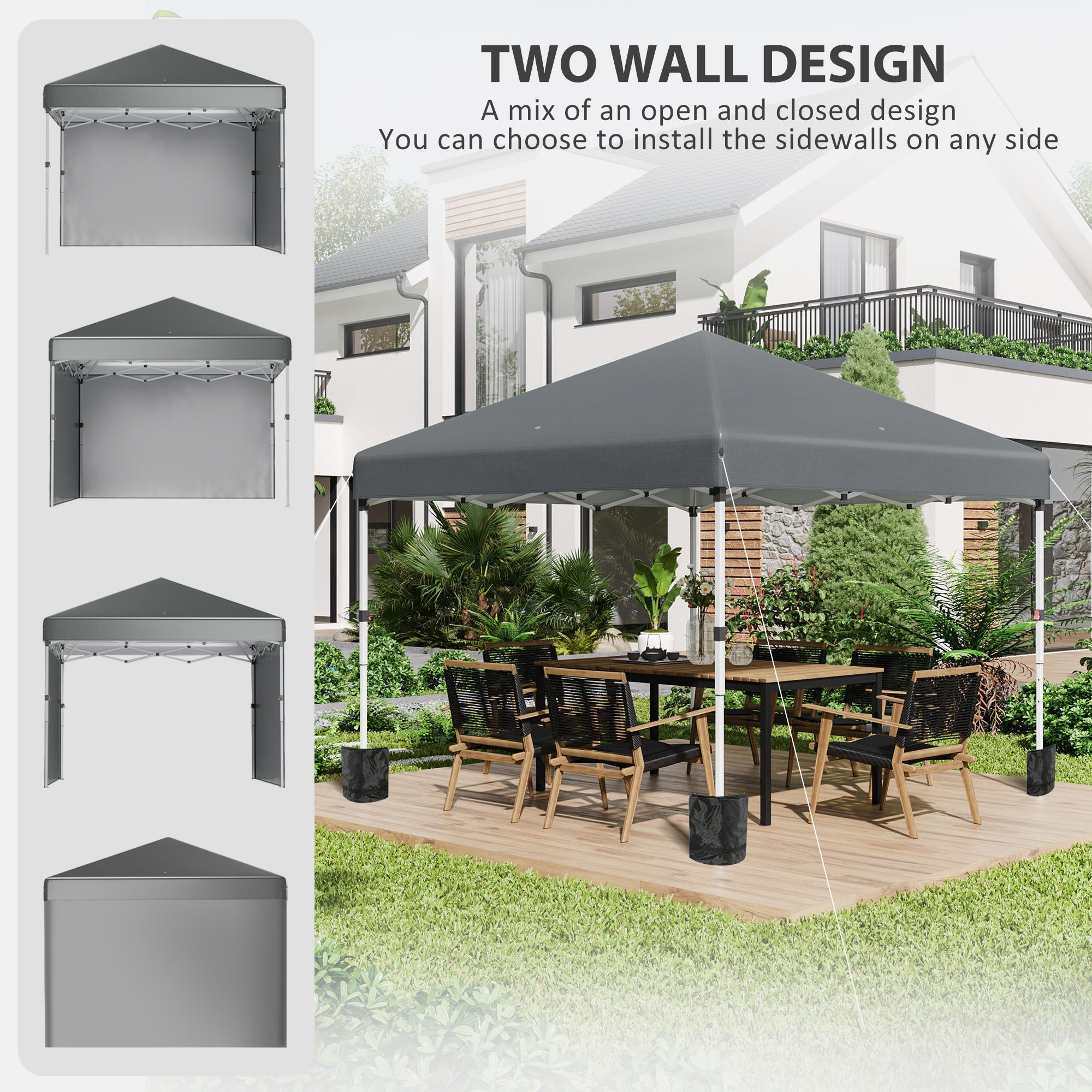 3 x 3 (M) Pop Up Gazebo with 2 Sidewalls, Leg Weight Bags and Carry Bag, Height Adjustable Party Tent Event Shelter for Garden, Dark Grey