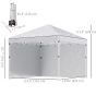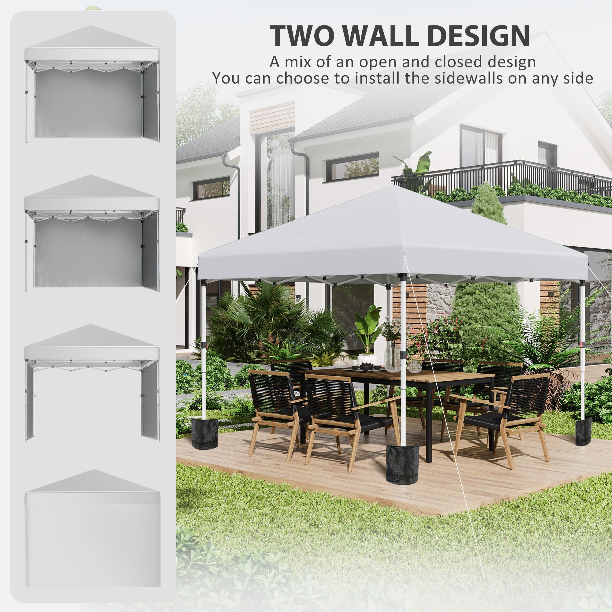 3 x 3 (M) Pop Up Gazebo with 2 Sidewalls, Leg Weight Bags and Carry Bag, Height Adjustable Party Tent Event Shelter for Garden, Patio, White