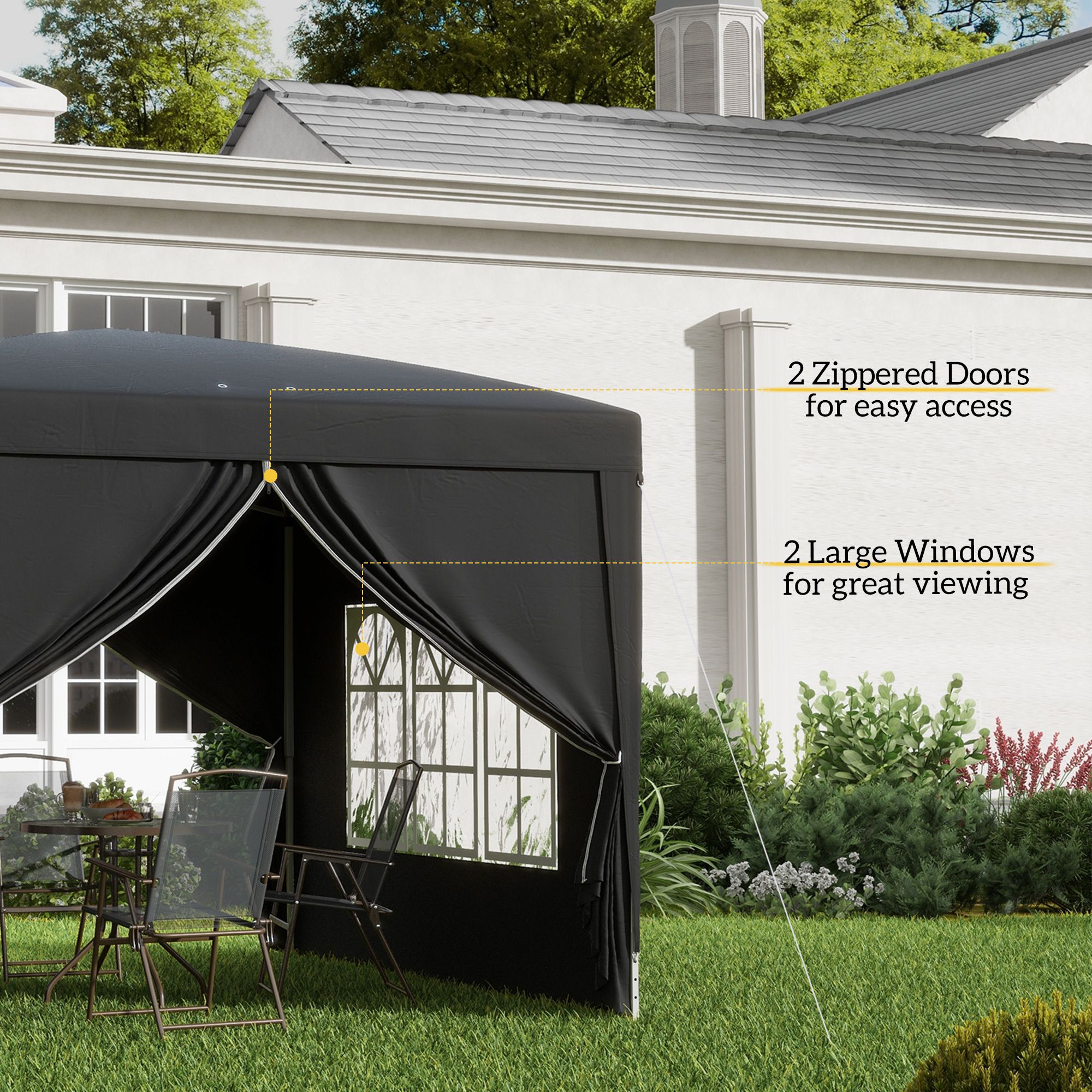 3 x 3 Meters Pop Up Water Resistant Gazebo Wedding Camping Party Tent Canopy Marquee with Carry Bag and 2 Windows, Black