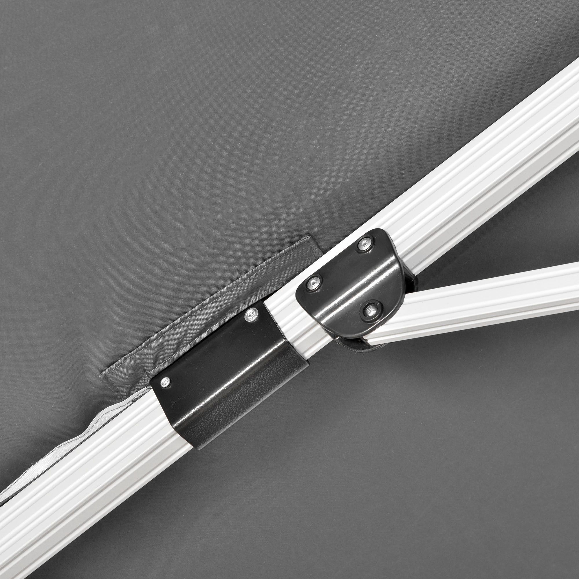 Keep yourself protected whilst enjoying the sun all day with this cantilever parasol from. A two-tier canopy for better airflow: reduces chances of it turning inside out. It's connected to the frame via eight aluminium ribs for support. The crank mechanism makes the canopy easy to open and close, with a foot pedal to change the 360° movement. Cross base included, 100kg+ weight is required.