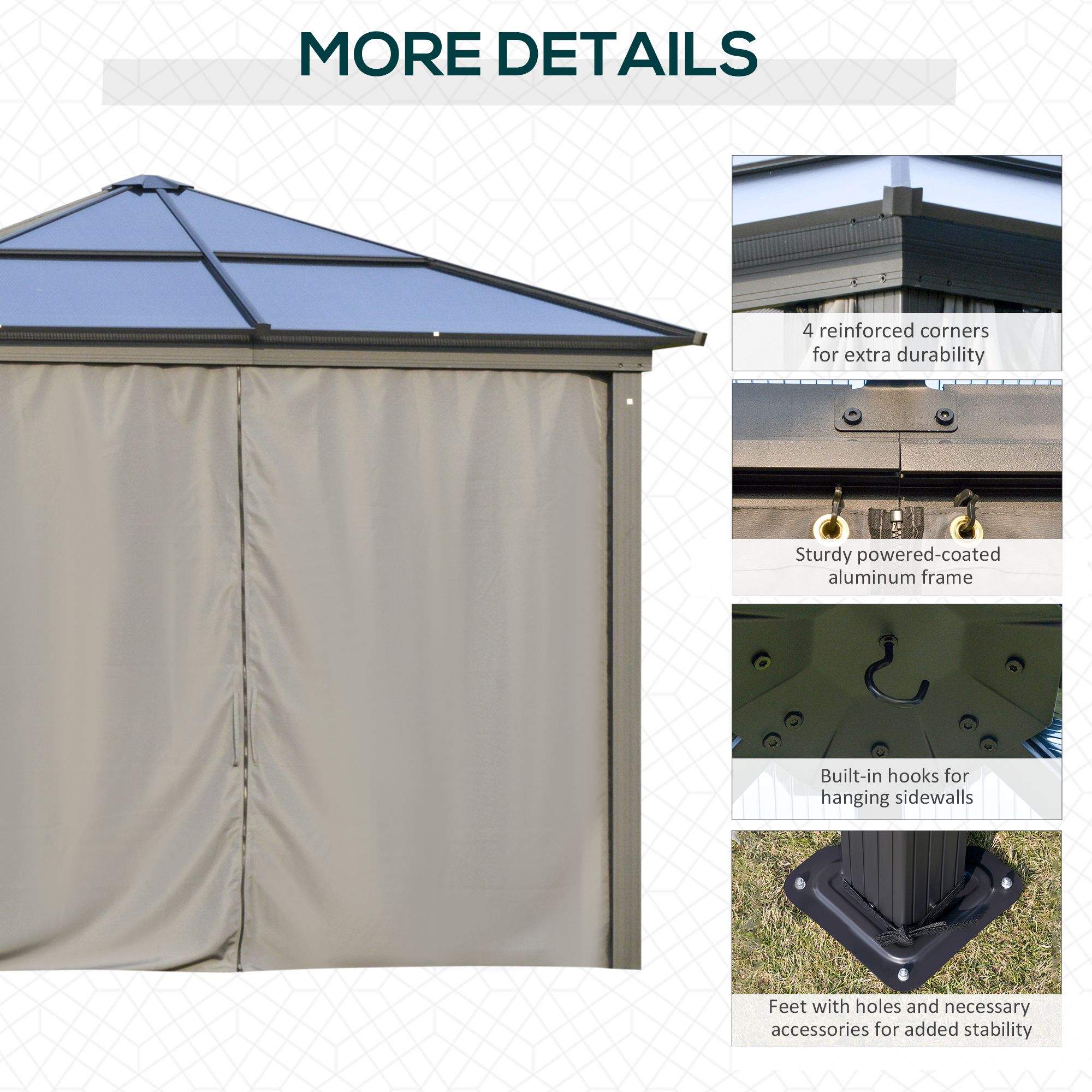 3 x 3M Hardtop Gazebo with UV Resistant Polycarbonate Roof & Aluminium Frame, Garden Pavilion with Mosquito Netting and Curtains