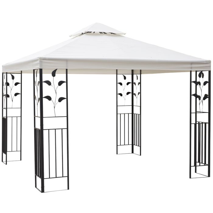 Add an elegant touch to any outdoor space with this 3x3m garden pavilion, from. The powder coated steel frame is strong, it stands even steadier when the eight stakes are pinned with it. The cut-out leaf and line design brings an elegant feel - great for stepping up your garden/outdoor party looks. The coated fabric canopy creates shelf shelter underneath, with a top tier to allow potential built-up air and heat to escape easily.