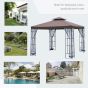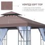 3 x 3M Patio Gazebo Canopy Garden Pavilion Tent Shelter with 2 Tier Roof and Mosquito Netting, Steel Frame, Coffee