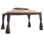- DOUBLE-ROOF DESIGN: 2-tier roof of the patio gazebo reduces heat and wind stress on the canopy, and the top cover has eight aluminium leaking holes for water drainage. Reinforced corners to stand years of use.