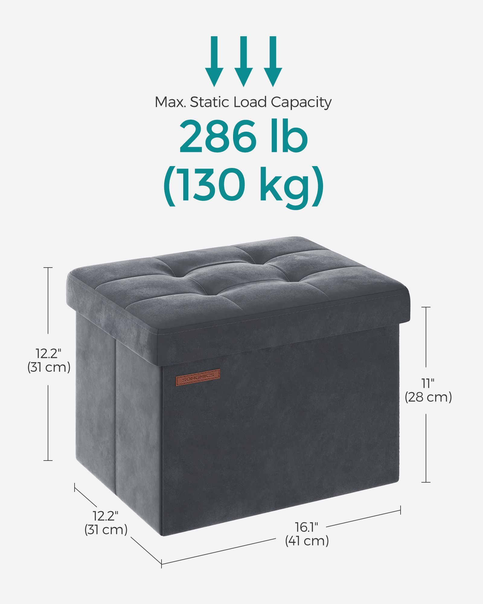 31 x 41 x 31 cm Foldable Storage Ottoman Bench Slate Grey