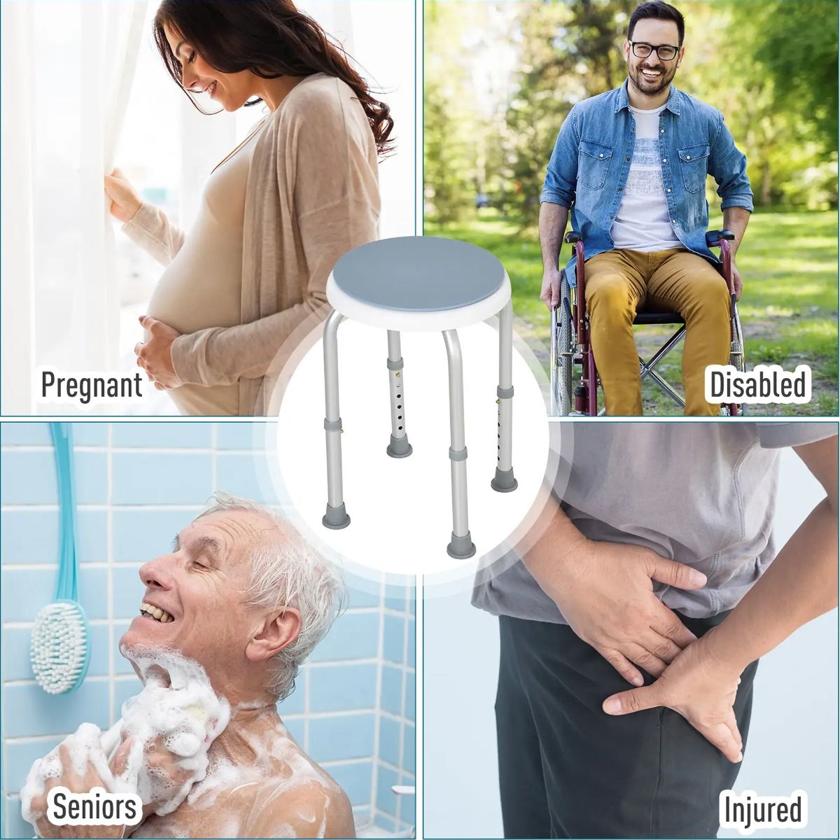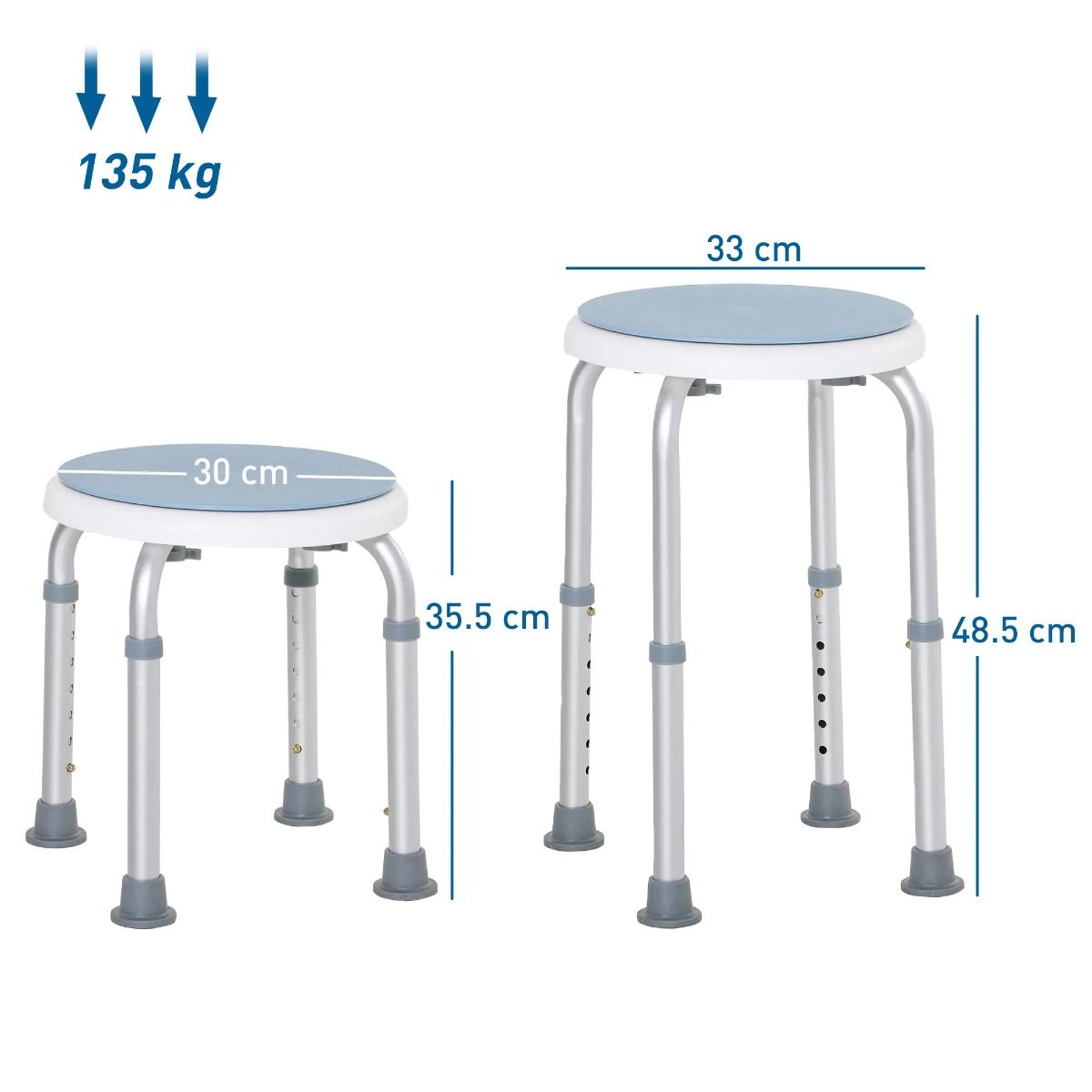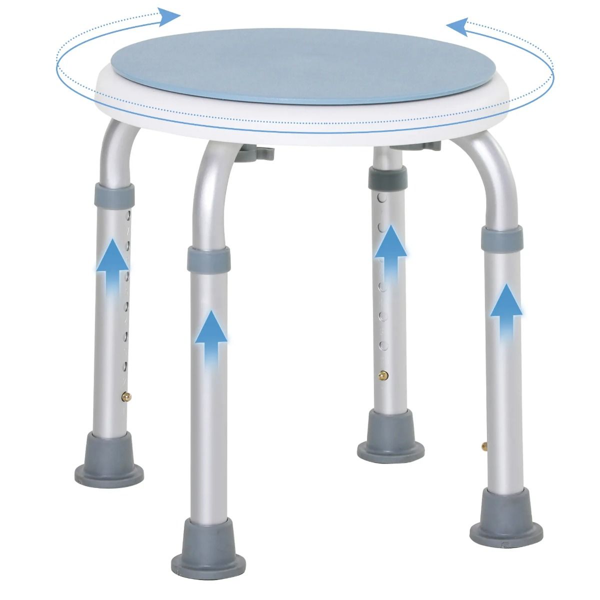 360° Swivel Seat Bath Shower Stool Adjustable Height w/ Aluminium Frame Non-Slip Feet Chair Safe Support Home Assistance