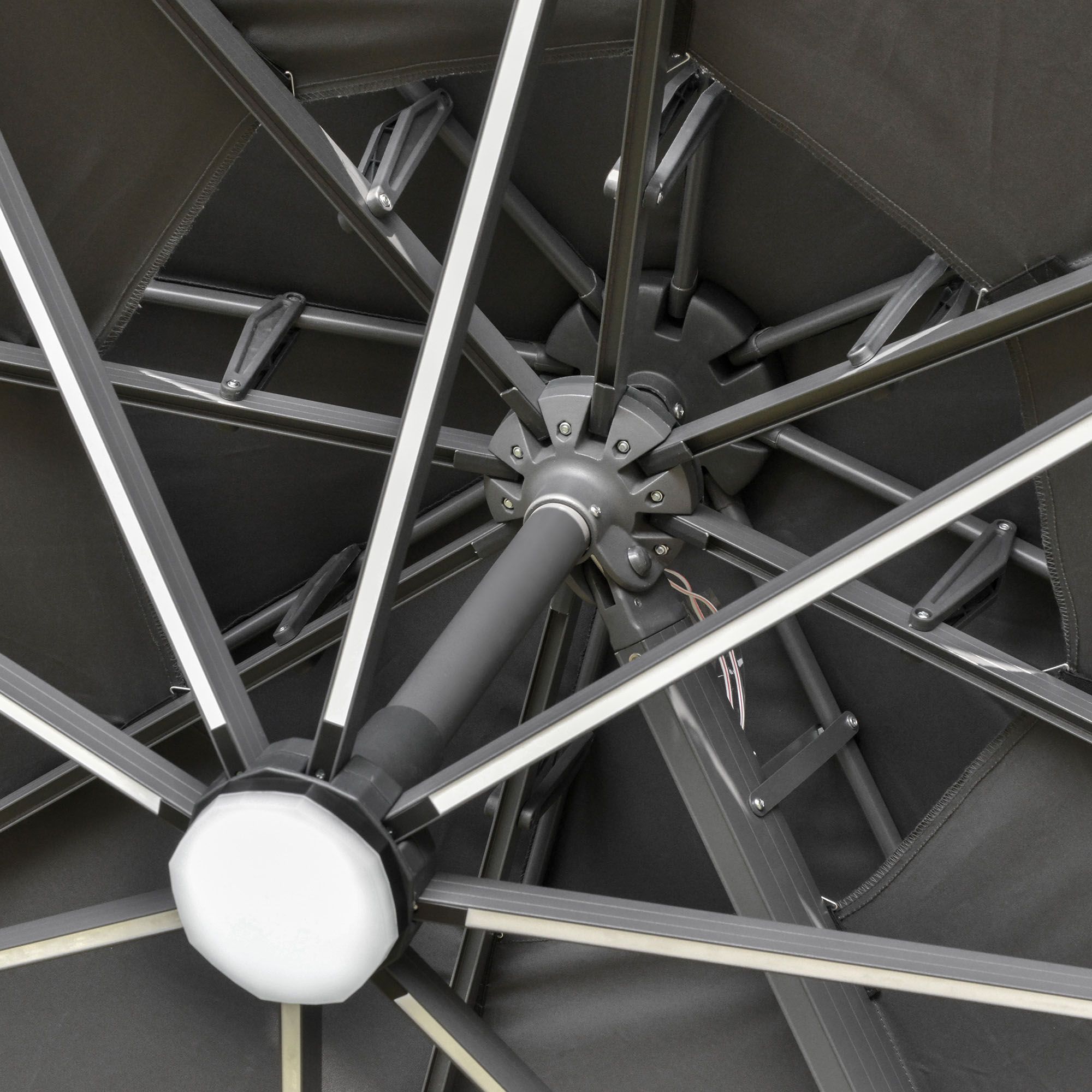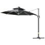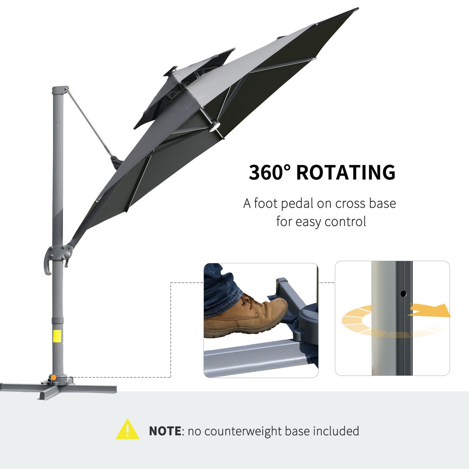 3m Cantilever Parasol w/ Solar Lights Power Bank Cross Base Adjustable Canopy 360° Spin Outdoor Garden Umbrella 2-Tier Roof Sun Shade Grey