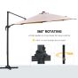 3M Cantilever Roma Parasol Garden Sun Umbrella with LED Solar Light Cross Base 360° Rotating, Brown