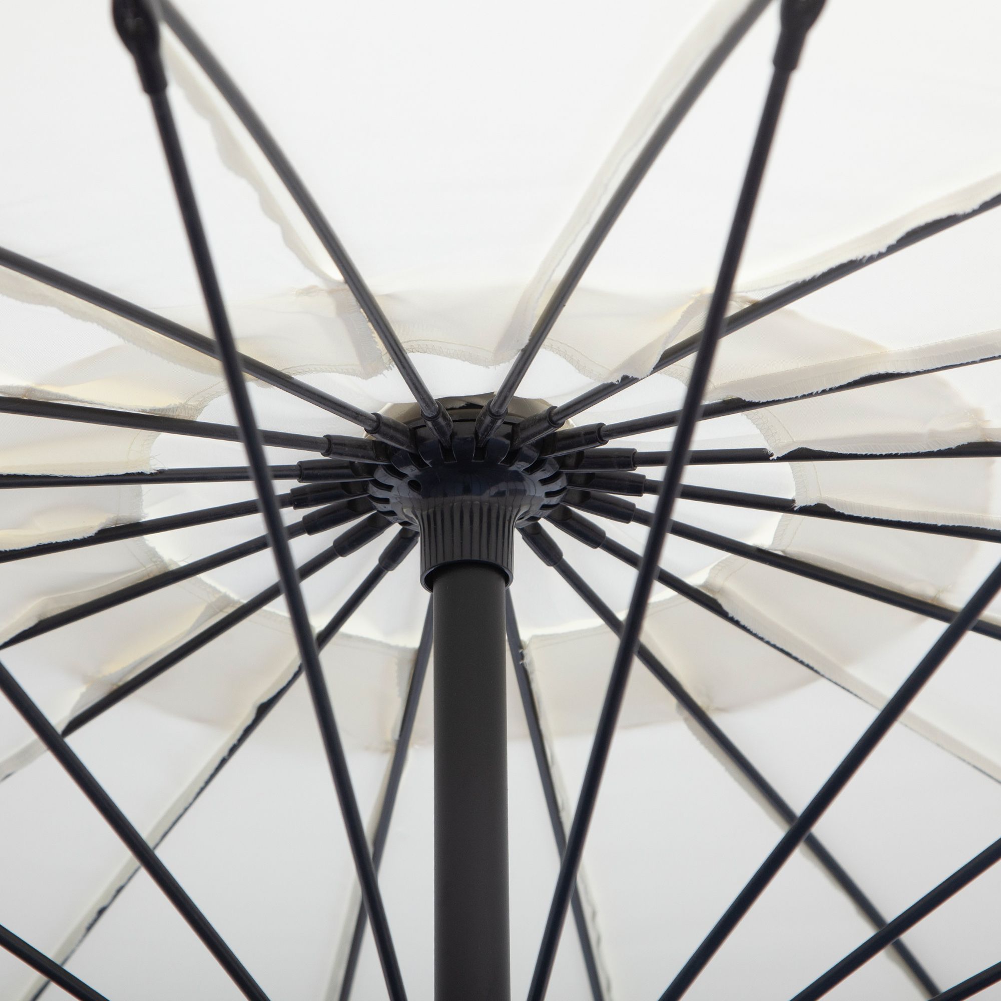 - METAL FRAME: A tough structure, powder coated for extra strength so the outdoor parasol stands in place. Connected to the canopy with 18 fibreglass ribs for stability.
