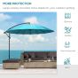 3M Cantilever Shanghai Parasol Garden Hanging Banana Sun Umbrella with Crank Handle, 18 Sturdy Ribs and Cross Base, Turquoise