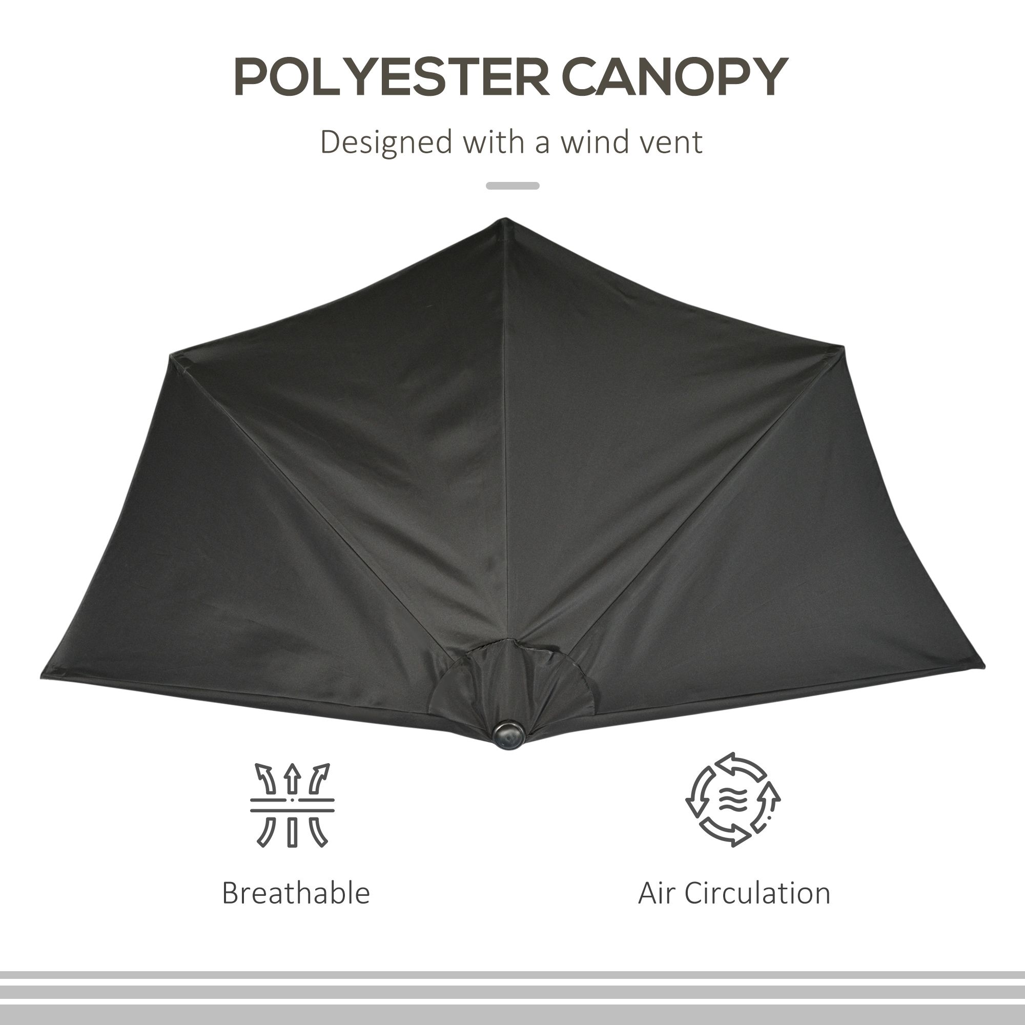 3M Half Parasol Semi Round Umbrella Patio Metal Frame Crank Handle for Balcony-- NO BASE INCLUDED, Black