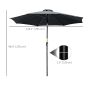 3M Tilting Parasol Garden Umbrellas, Outdoor Sun Shade with 8 Ribs, Tilt and Crank Handle for Balcony, Bench, Garden, Black