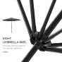 - STEEL FRAME: A solid structure, umbrella for garden table stand in place all day long. Eight ribs connect to the canopy for extra strength. Powder coated steel pole for resistance to rust and stronger support