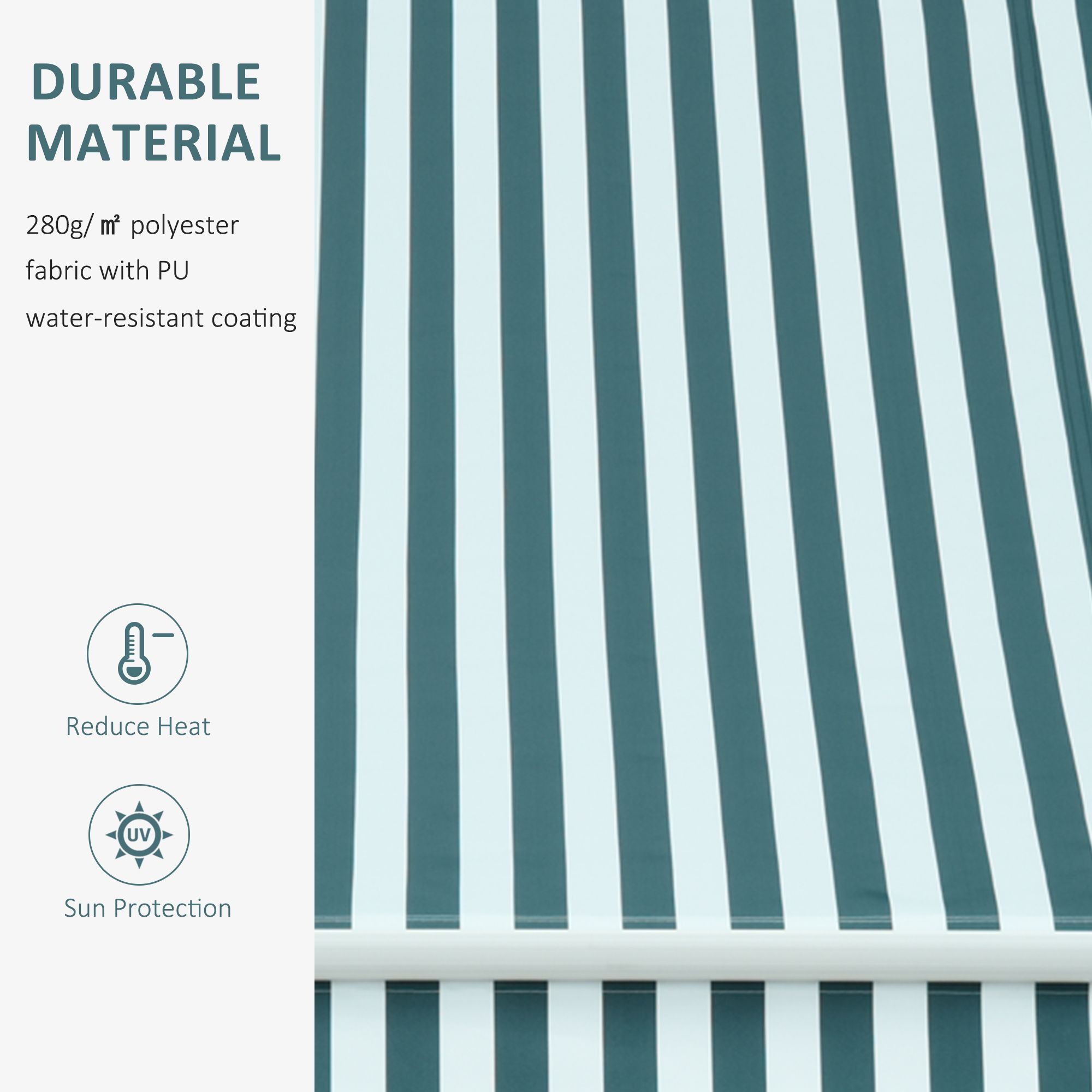 - REDUCE HEAT: Made of 280g/? water-resistant polyester with PU coating, our sun shade patio awning protect your home from the sun"™s damaging UV rays and reduce the heat temperature inside your home.