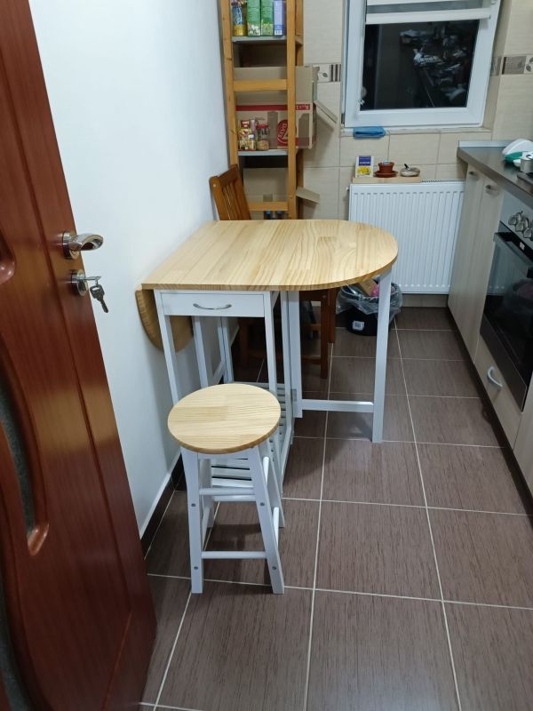 - SPACE SAVING: The drop-leaf tabletop can be folded in half or entirely to meet various needs, suitable for a compact space. The bar stools can be tucked under the table neatly to save space and keep organized