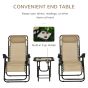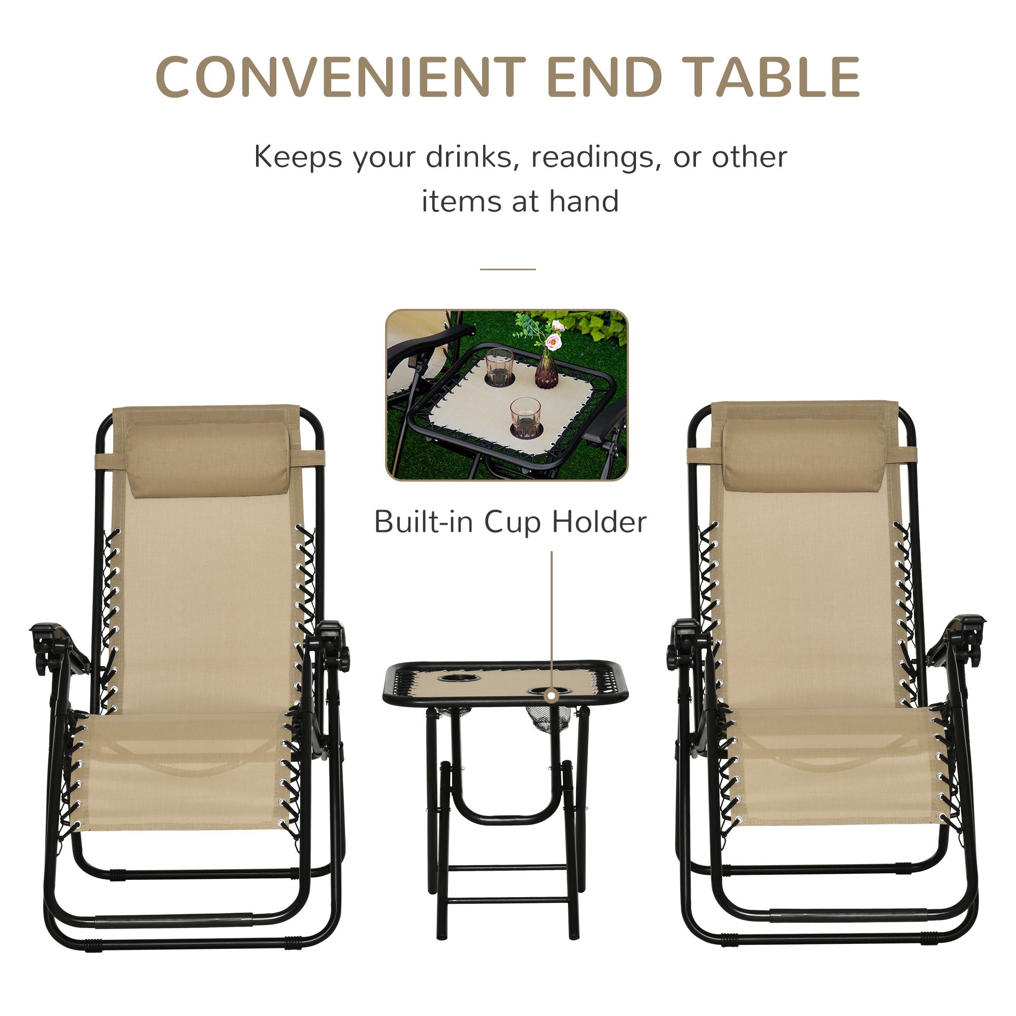 3pcs Folding Zero Gravity Chairs Sun Lounger Table Set w/ Cup Holders Reclining Garden Yard Pool, Beige