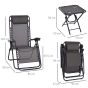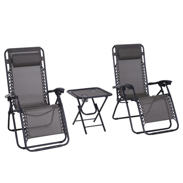 3pcs Folding Zero Gravity Chairs Sun Lounger Table Set w/ Cup Holders Reclining Garden Yard Pool, Dark Grey