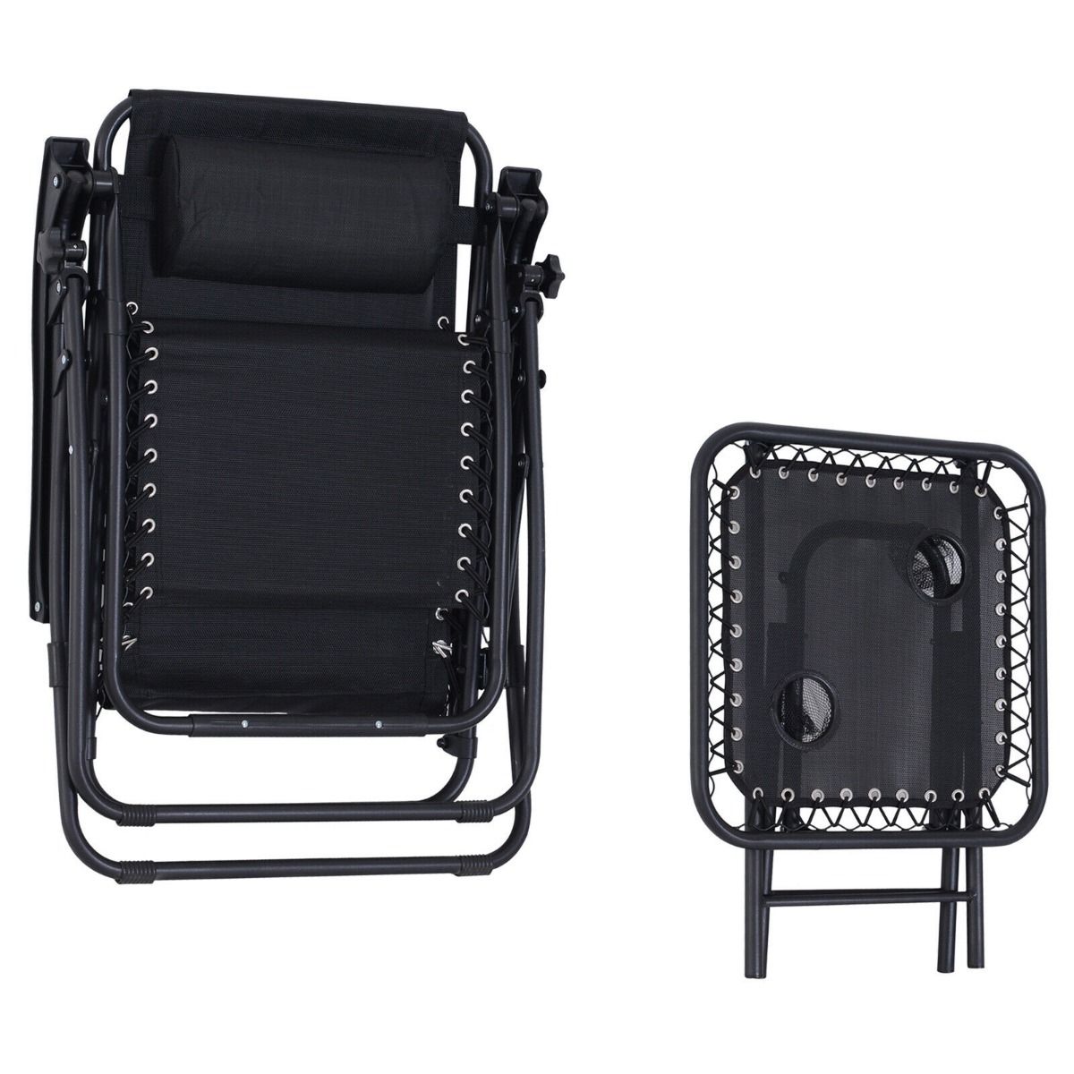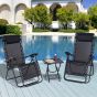 - Two zero-gravity chairs and a side table, all made from powder coated steel