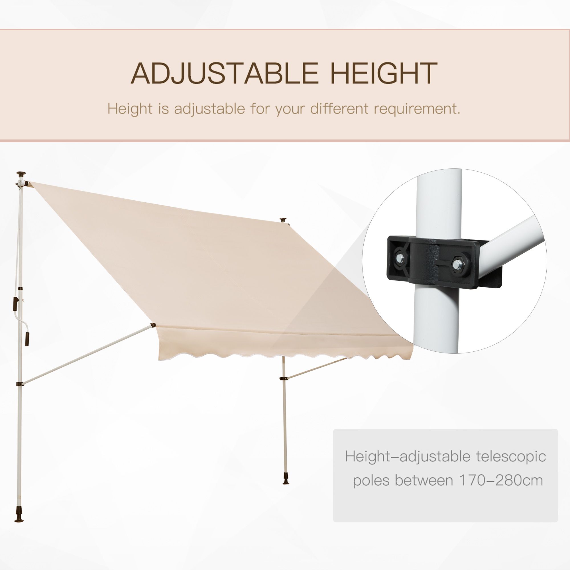 Bring shelter into your outdoor garden space when needed with this 300cm x 150cm beige awning from. Easy to set up to save you time and effort, its ceiling-to-ground design makes it more stable and secure as opposed to a ceiling only awning, with the powder coated aluminium frame ensuring it is tough and durable for long-term use in your home. Manually operated via the crank handle, the canopy angle can be adjusted between 0 – 90 degrees, with the height ranging from 1.7 to 2.8m, allowing you to easily set it to a position which suits you, with the weather-resistant canopy shielding you from UV rays, the sun glare and light wind and rain. The best way to enjoy your garden even more all-year round.