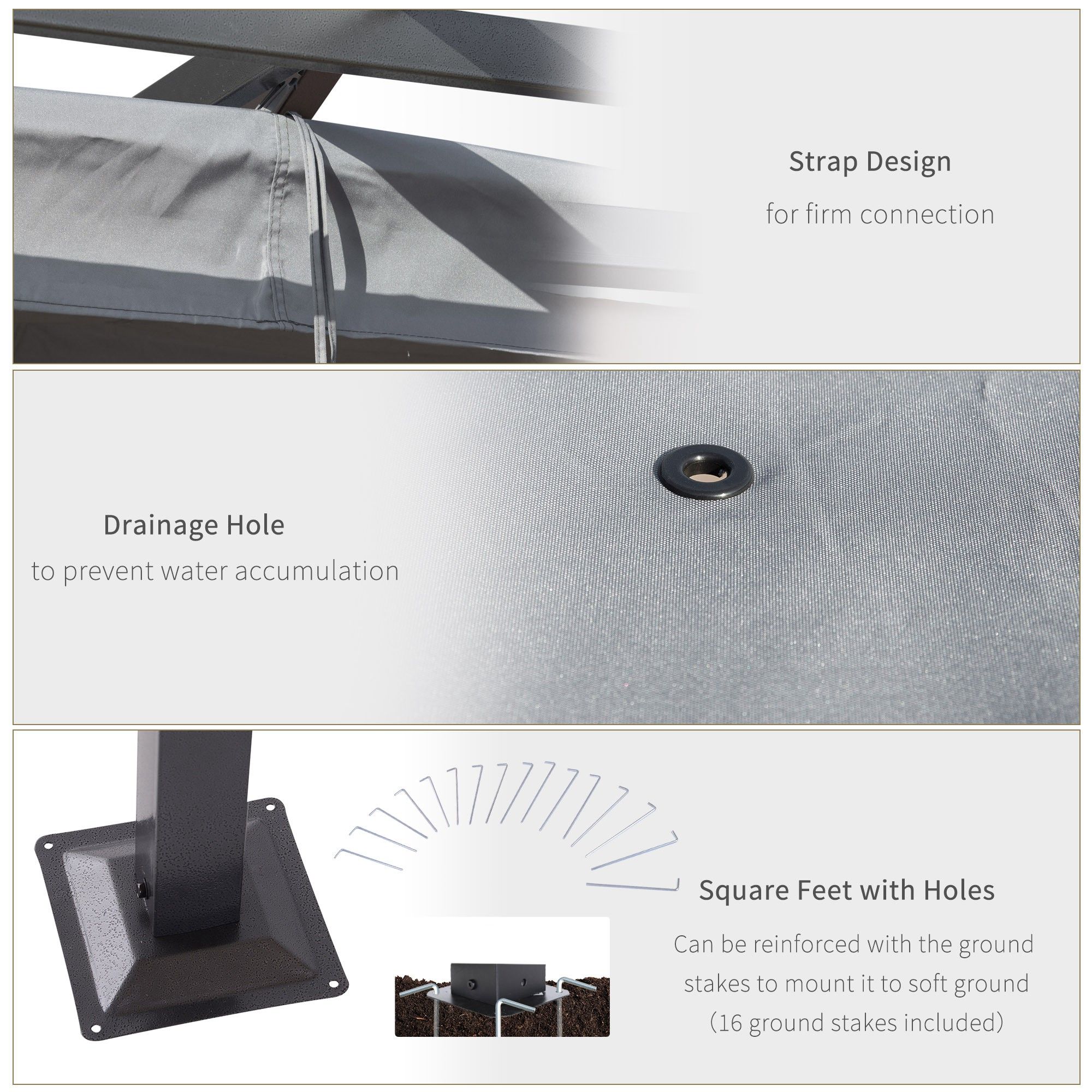 - 16 GROUND STAKES INCLUDED: Pin pergola kit to the ground, keeps it more stable and steady