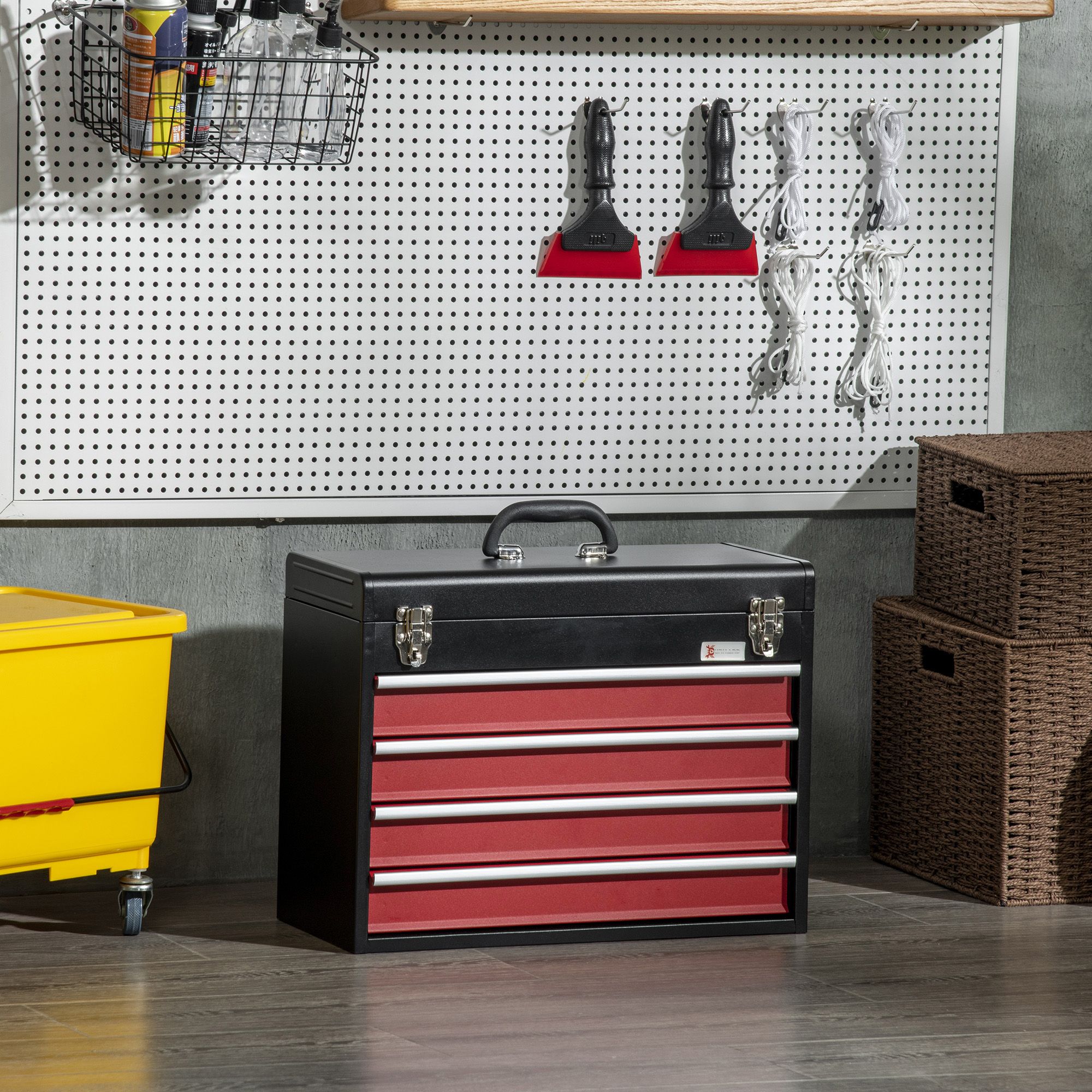 4 Drawer Tool Chest, Lockable Metal Tool Box with Ball Bearing Runners, Portable Toolbox, 510mm x 220mm x 395mm