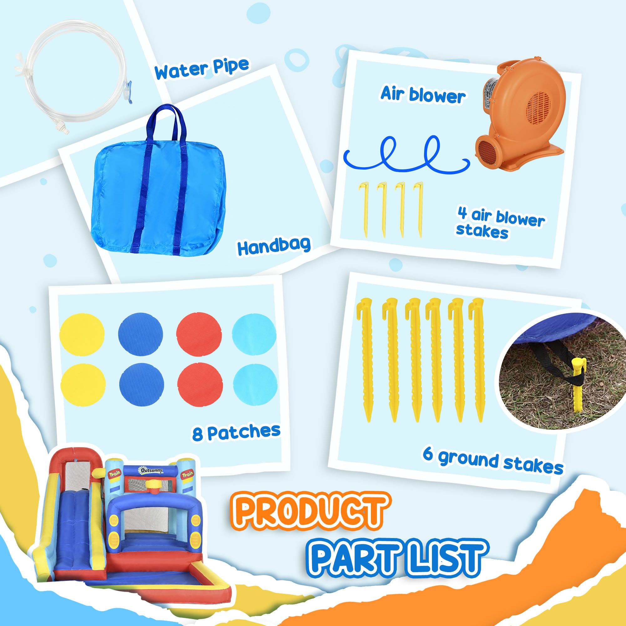 - Multiple activities: Includes an inflatable water slide, pool, trampoline and climbing wall. Lots of activities to keep children filled with excitement and laughter as they play.