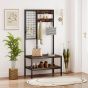 4 in 1 Hall Tree with Shoe Bench and 8 Hanging Hooks for Entryway