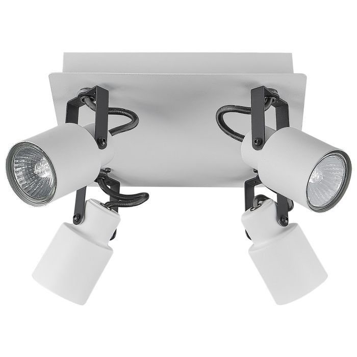 This ceiling lamp with 4 spotlights is going to look great in your living room or in a dining room, enriching the area with its modern design and illuminating it with warm light. The pieces are adjustable, so you can use them as task lights or ambient lightning, and they're made out of durable iron, which makes them easy-care. Its white colour makes them stand out and fit into modern interior styles. Details: Color: White. Main material: Iron. Weight: 1 Assembly: Requires Installation