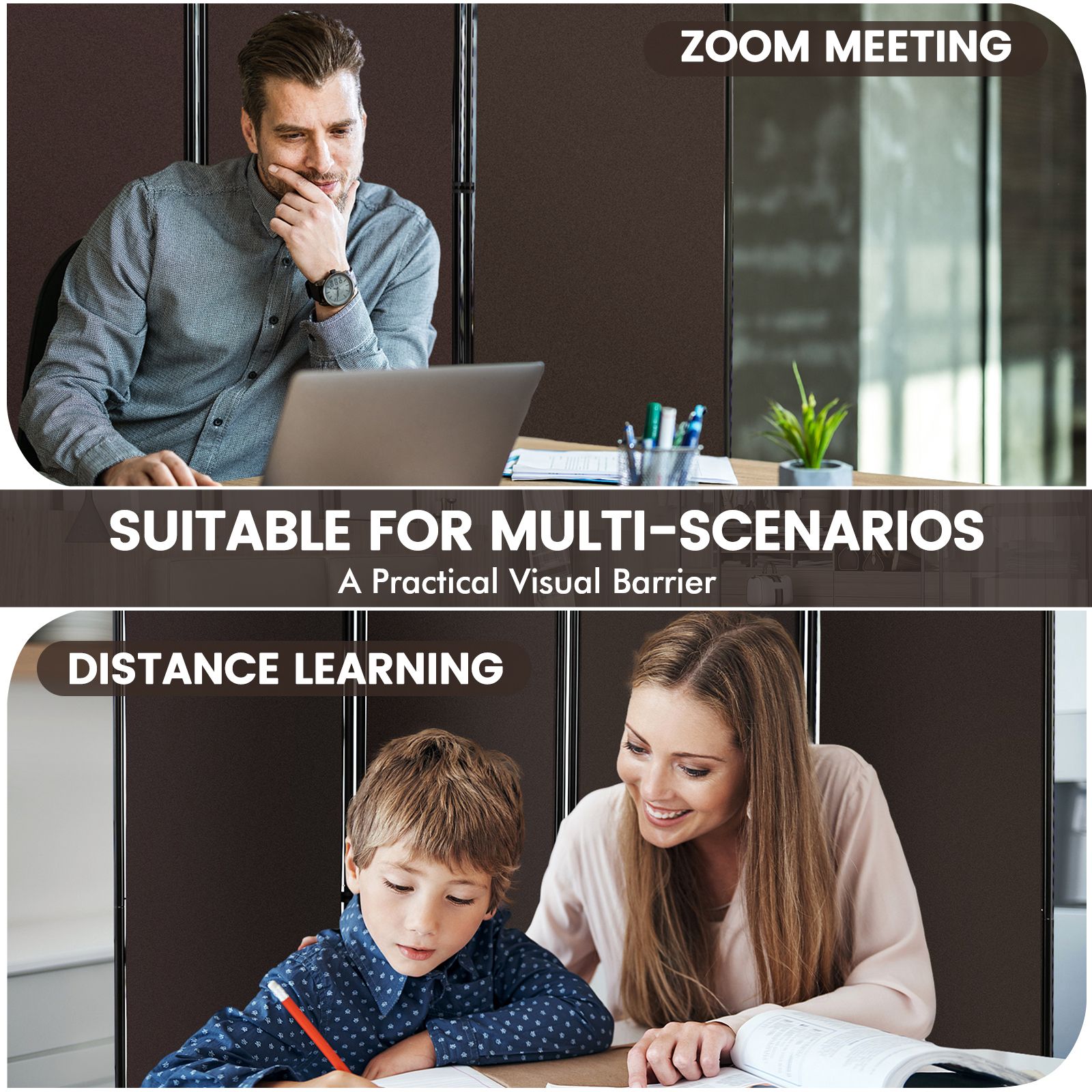 Looking for a room divider that's easy to move around? Check out this great 4-panel privacy screen! The frame of the folding room divider is made of sturdy metal for good stability. In addition, the surface of the room screen divider is made of breathable fabric, which is wear-resistant and will not transmit light. Meanwhile, the room divider comes with ten lockable universal wheels, allowing you to move it freely. Each panel can be used individually or combined together with connecting clasps for easy storage or transportation. If you are looking for a room divider like this, do not hesitate to place an order! 4-Panel Room Divider: This folding room divider consists of 4 panels that together are 260x180cm(3 Panel)/224x172cm(4 Panel). No matter where you are, you can create a private space when you unfold the panel screen. Its large screen allows you to isolate yourself from the unavoidable distractions in public areas so you can focus on your work or study. Lockable Universal Wheels: This office wall partition has 8/10 universal wheels that allow you to move the privacy screen anywhere without difficulty. 4cm wide casters provide better stability and weight-bearing capacity. In addition, the wheels of the room screen are equipped with brakes, so you can lock the wheels to secure the panel room divider. Folding Design for Free Combination: You can use this portable screen divider as 4 single units, or you can connect them with the included connecting clasps to form a large one. The folding screen can be folded 360 degrees or flexibly arranged into various shapes according to your personal needs: such as L-shaped, W-shaped, C-shaped, etc. Durable Material: The panels of this privacy separator with wheels are made of high quality polyester fabric, which allows air circulation without letting light in. The frame and base made of metal are strong enough and rust-proofed for long-lasting use. Moreover, both the screen and the frame are detachable for easy storage. Wide Range of Applications: Apart from being used as a partition in the living room or bedroom, our privacy divider with wheels also have a wider range of uses. You can place the room divider next to a window to block the sun, and you can also create a temporary privacy space for overnight guests. It is also a practical and easy-to-set-up background for remote video conferencing.