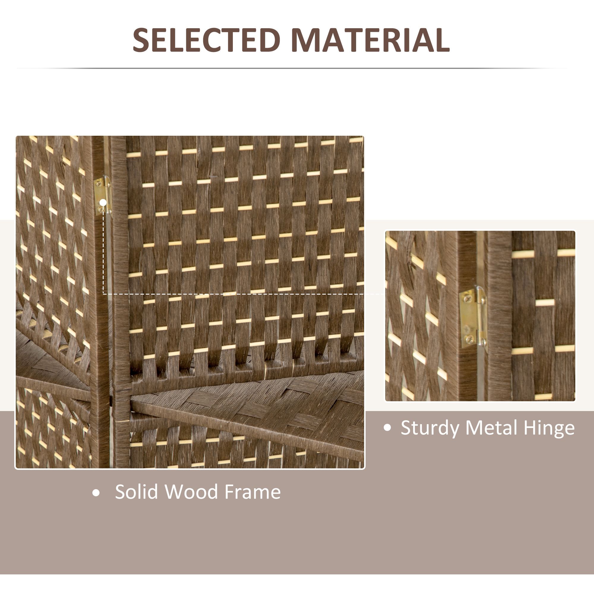 4-Panel Room Dividers with Shelves, Wave Fibre Freestanding Folding Privacy Screen Panels, Partition Wall Divider for Indoor Bedroom Brown