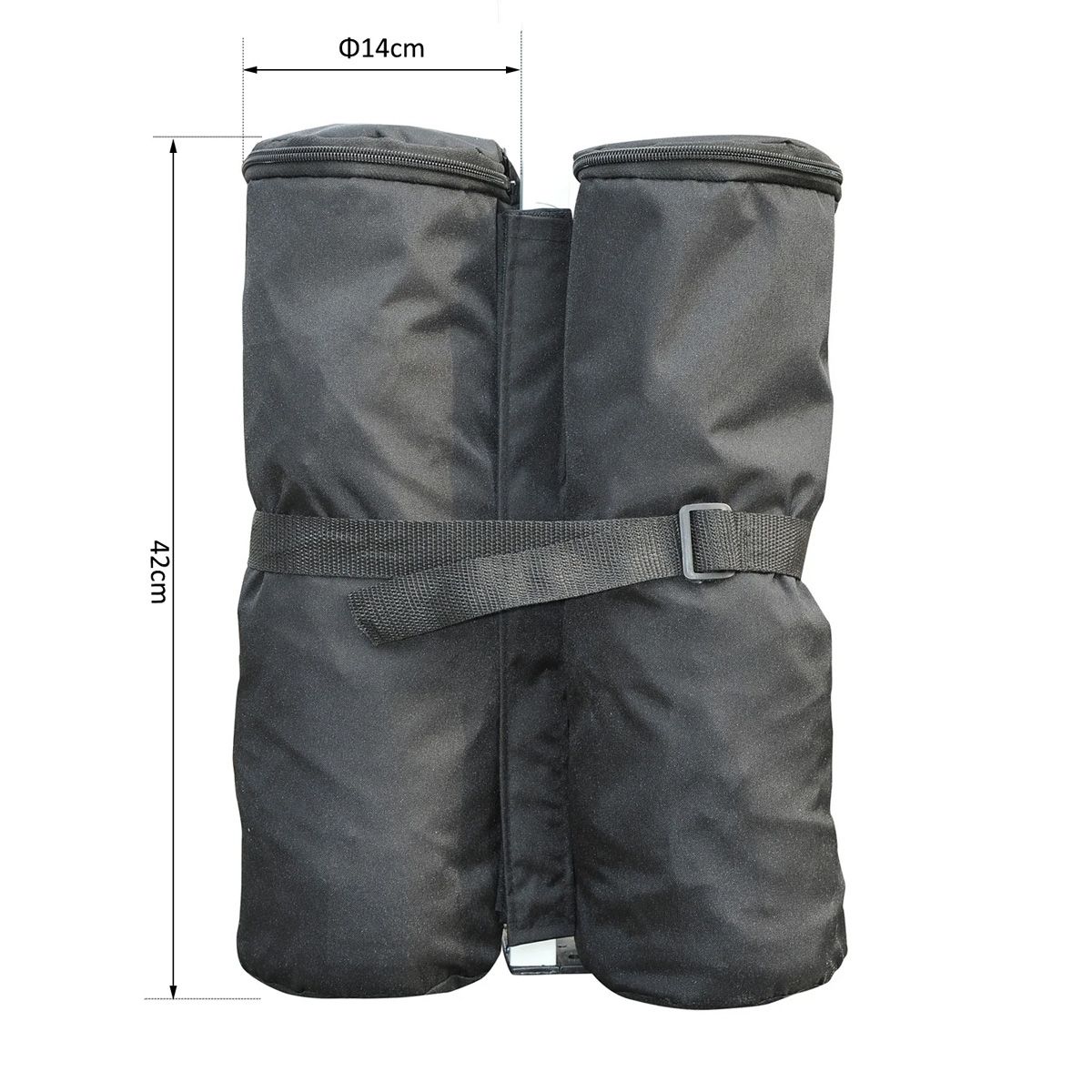 These gazebo leg weights are perfect for increasing gazebo's stability in high wind conditions, and it design to be very convenient to use and easy to storage. It can be filled with sand or gravel, which can be found easily. It is space saving when not in use!
