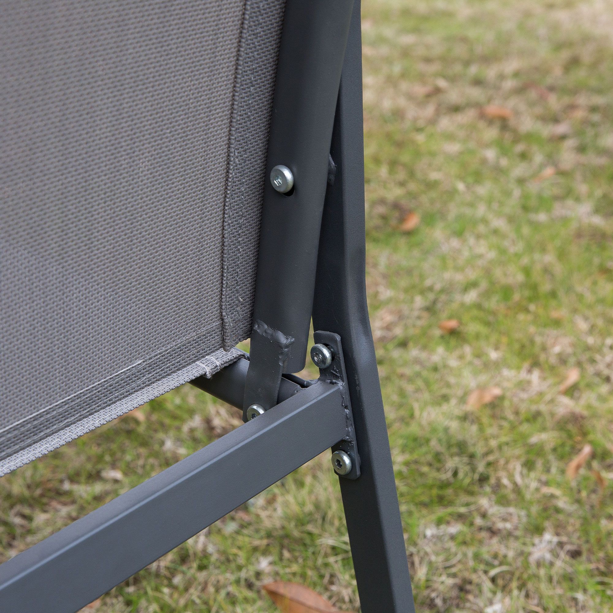 - TEXTELINE SEATS: The backyard furniture's texteline seats distribute your weight evenly for comfort as you sit. Allows skin to breathe easily and be spot cleaned to keep fresh. TEMPERED GLASS TABLETOP: A beautiful finishing touch, a smooth and even surface which can be wiped clean easily.