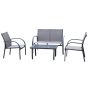 4 Pcs Curved Steel Outdoor Furniture Set w/ Loveseat, 2 Texteline Seats, Glass Top Table Garden Balcony Patio Furniture For Party Event-Grey