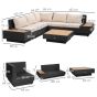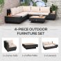 4 PCs Rattan Garden Furniture Outdoor Sectional Corner Sofa and Coffee Table Set Conservatory Wicker Weave with Armrest and Cushions Black