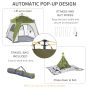4 Person Automatic Camping Tent, Outdoor Pop Up Tent, Portable Backpacking Dome Shelter, Green