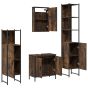4 Piece Bathroom Furniture Set Smoked Oak Engineered Wood - vid-3214832