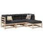 This garden sofa set is the perfect addition to your backyard, terrace, or patio, providing a comfortable and inviting space for chatting with family and friends or simply relaxing and enjoying the outdoors. Sturdy and durable material: Solid pinewood is known for its strength and durability. Its straight grains and distinctive knots contribute to its rustic charm.Well-ventilated and pooling prevention: The slatted design promotes optimal airflow and effectively prevents water pooling, ensuring a dry and comfortable seat.Modular design: This outdoor furniture set has a modular design, making it completely flexible and easy to move around, so you can create a customised outdoor furniture arrangement. Good to know:To make sure your outdoor furniture stays beautiful, we recommend protecting it with a waterproof cover.
