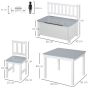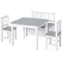 Modern Design 4 Piece Kids Table Set with 2 Wooden Chairs, 1 Storage Bench - Grey with White