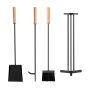 4-Piece Metal Fireplace Tools Set with Wood Handle and Base Stand Holder