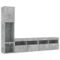 4 Piece TV Wall Units with LED Concrete Grey Engineered Wood