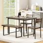 4-Piece Wooden Rectangular Dining Table Set with 1 Bench and 2 Armless Chairs for 4-Grey