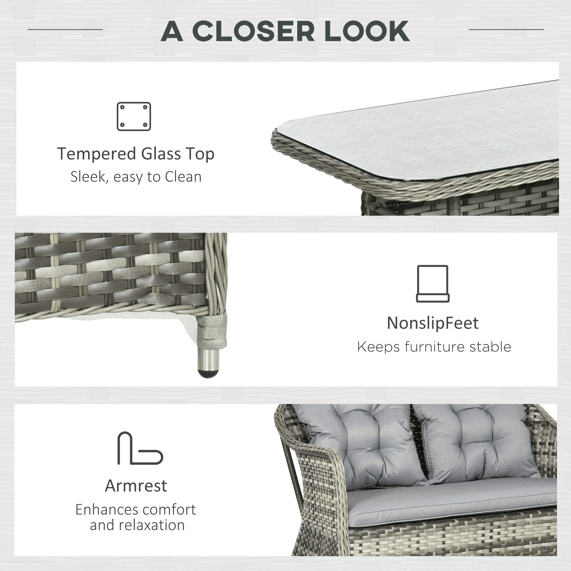 - Comfortable seating: This grey rattan sofa set come with soft padded cushions placed on the seats and backs so you can sit comfortably all day long, the seat cushion covers with zippers can easy removable and washable.