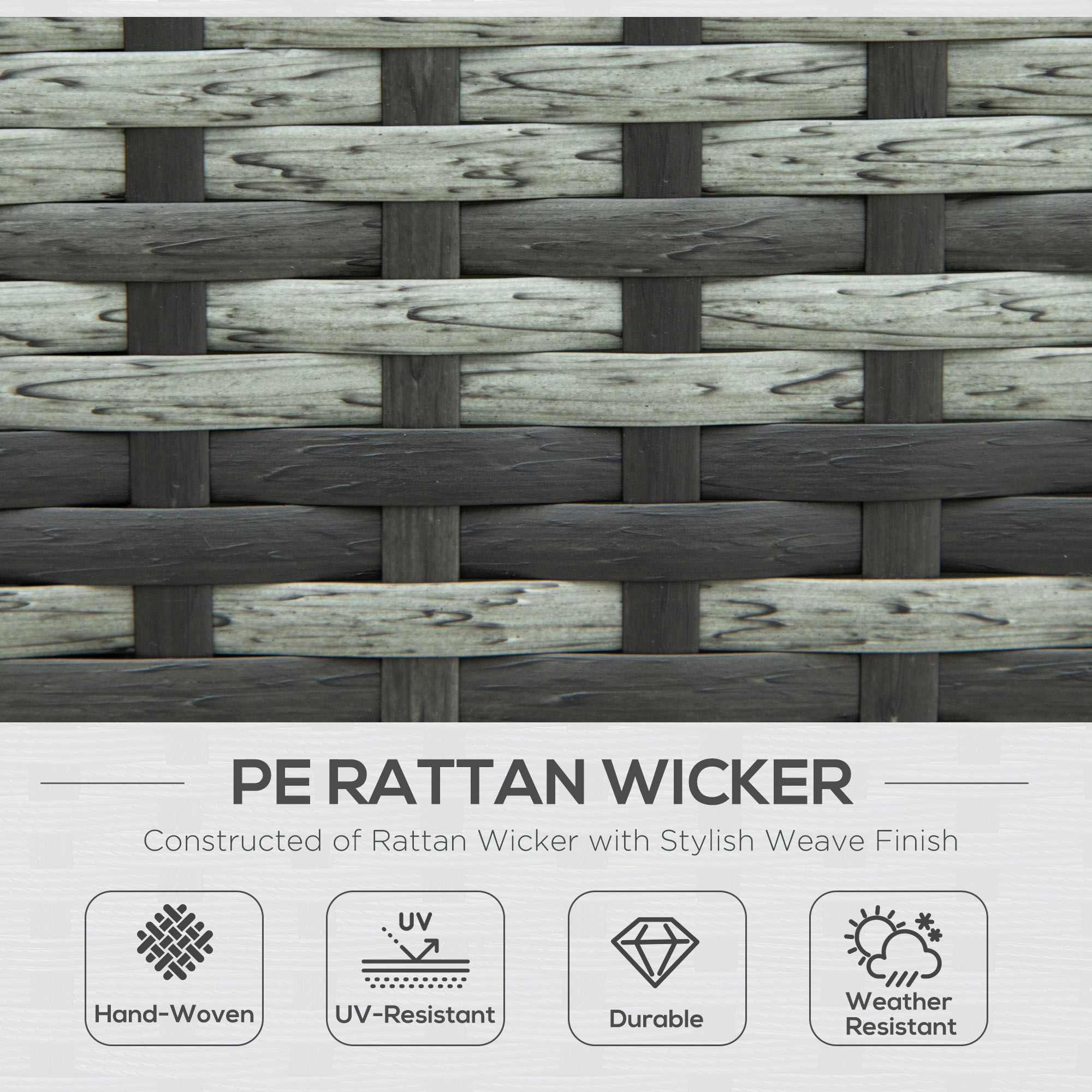 - Steel frame, wrapped in rattan: Each piece in this rattan furniture set has a strong core: plastic wicker over the top for extra protection and double the durability.