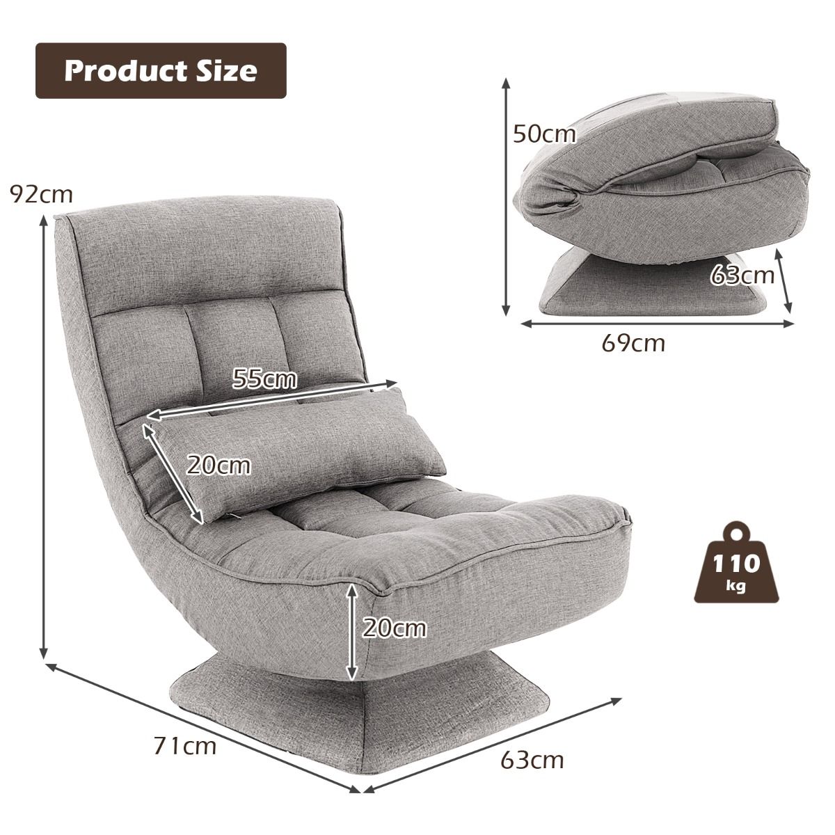 Package Includes: 1 x Swivel Floor Chair 1 x Instruction Manual
