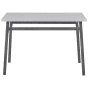 A dining furniture group perfect for minimalists and industrial style enthusiasts. The combination of black metal frame and light grey surfaces create an uncomplicated whole, complementing every small kitchen or dining room. Sturdy structure and a laminated tabletop allow for frequent use and effortless cleaning, also with small children. Details: Color: Grey, Black. Main material: MDF. Additional material: Steel, MDF. Weight: 28 Capacity: 4 People Assembly: Full Assembly Required Overall Dimensions: 110x70x75 Table Dimensions: 110x70x75 Chair Dimensions: 44x41x81 Seat Height: 44