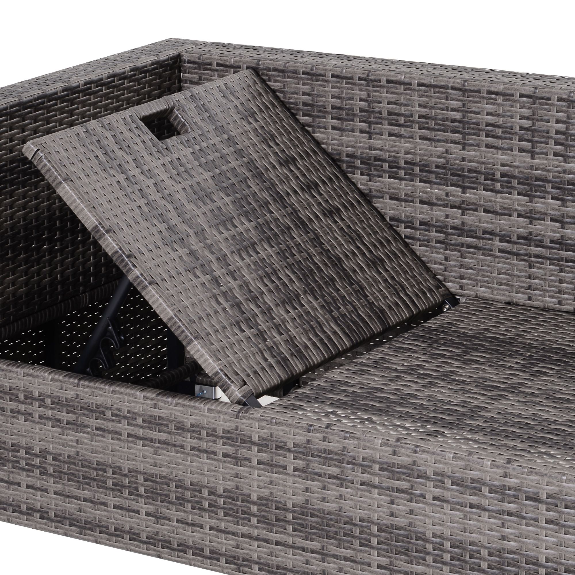 - RECLINING SEAT: Located among the garden rattan furniture sets, it leans back to five different positions, letting you choose an angle which is most comfortable for you. STORAGE TABLE: Underneath space of the outdoor corner sofa is concealed by a side lift-up door, a discreet way to keep your garden dining area neat and tidy.